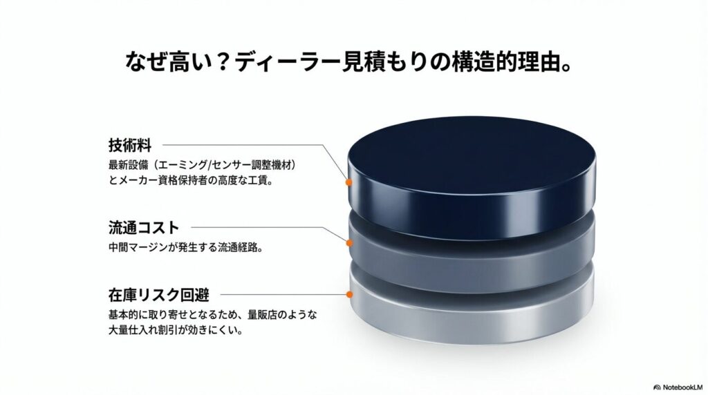 実は、ディーラー価格が高いのには明確な理由があり、それを理解した上で交渉すれば費用を抑えることも可能です。