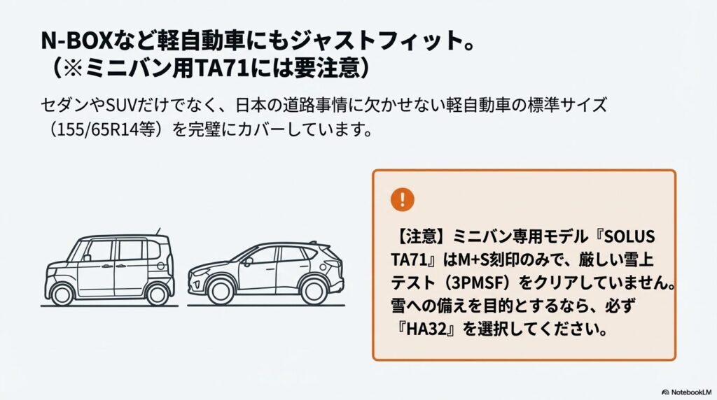 HA32は、セダンやSUVだけでなく、日本の道路事情に欠かせない「軽自動車」向けのサイズラインナップも豊富に用意されています。