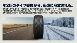 タイヤの寿命が近づいている方や、毎年のタイヤ交換にウンザリしている方は、ぜひ次回のタイヤ選びの候補に入れてみてください。