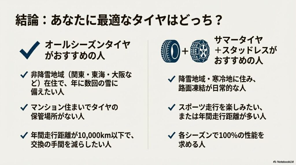 まとめ|サマータイヤとオールシーズンタイヤの違い