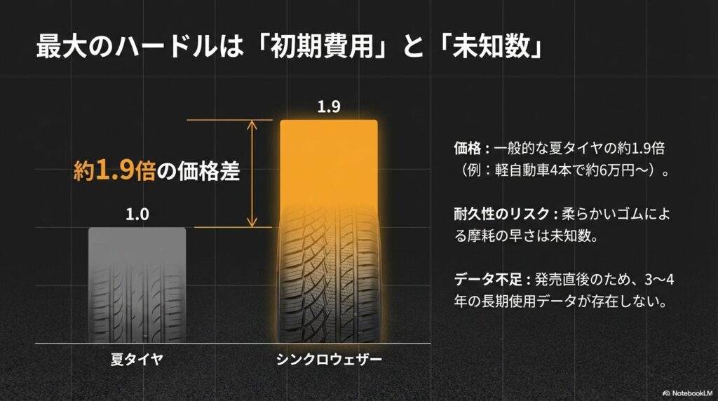 - 価格は夏タイヤの約2倍と高額。