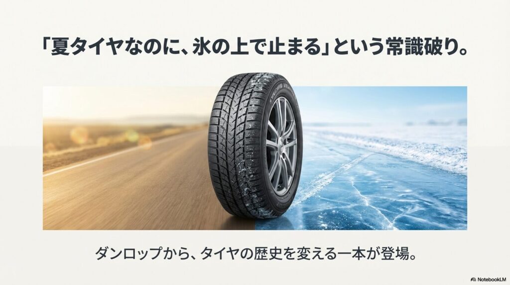 なんでも「夏タイヤなのに氷の上でも止まる」という、これまでの常識では考えられない性能を持っているとか。