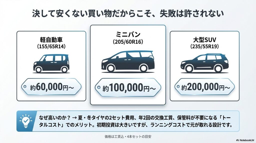 - 夏タイヤとスタッドレスタイヤを2セット買う費用