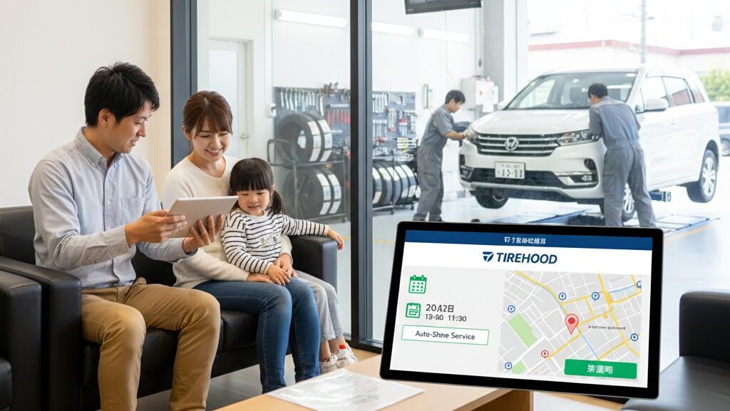 従来だと、ネットでタイヤを買って、それが家に届いて、重いタイヤを車に積んで、近くの工場に電話して持ち込み交換をお願いして…という手間がありましたが、タイヤフッドなら「手ぶらでお店に行くだけ」です。