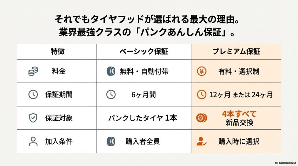 保証無料パンク保証(6ヶ月)付き別途料金で加入