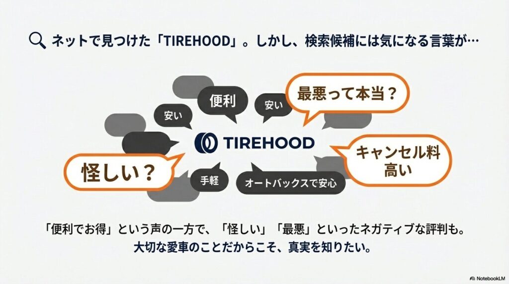 そう考えてタイヤフッドの評判や口コミを調べてみたものの、検索候補に怪しいとか最悪といったネガティブな言葉が出てきて不安になっていませんか?