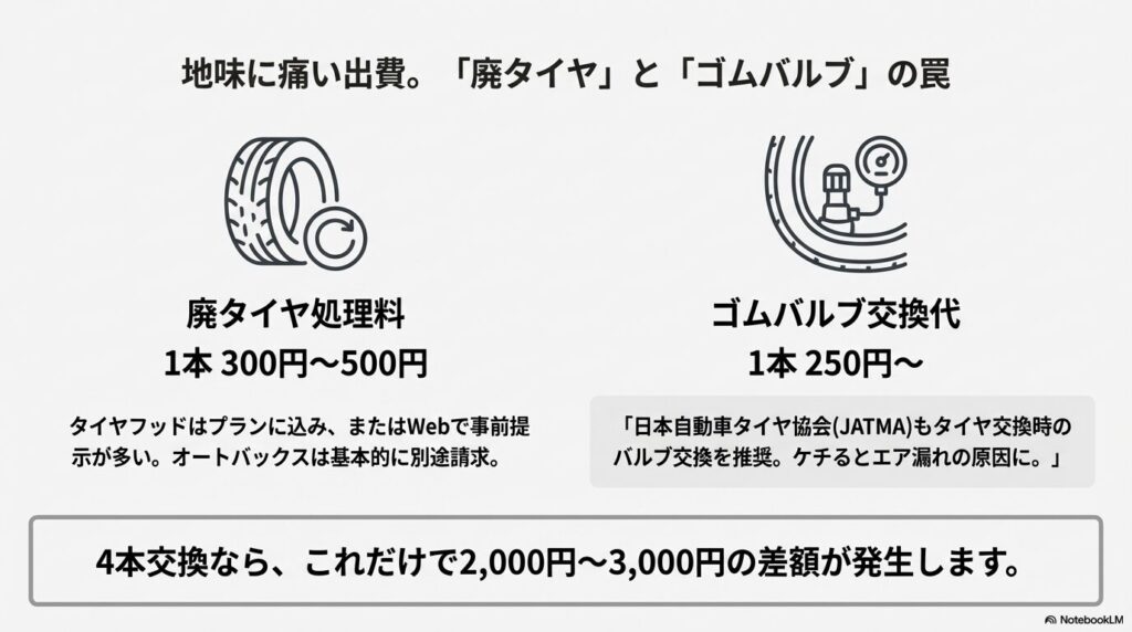 廃タイヤ処理やバルブ代の罠