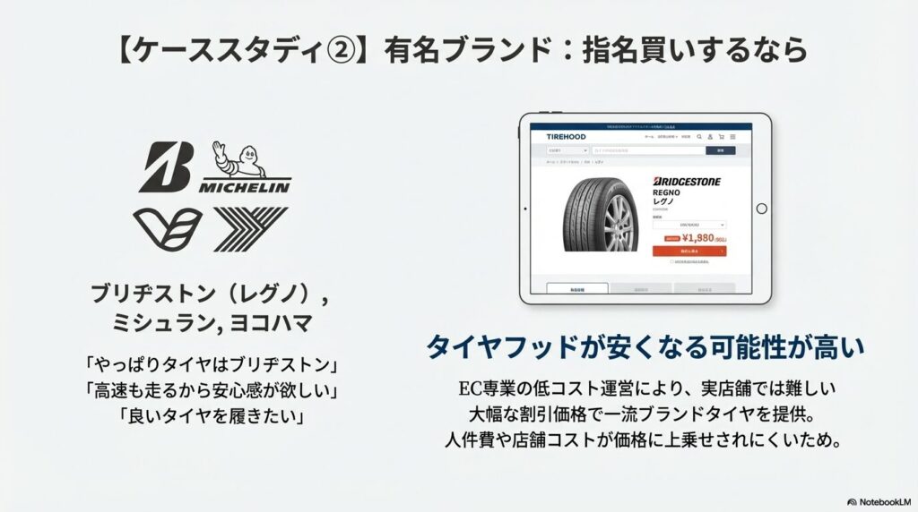 - ブリヂストンやミシュランなどの有名ブランドタイヤを履きたい人